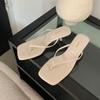 Fashion Fashion Square Toe Ladies Medium Heels Slippers Shoes Spring Summer Female Flip Flops Slides Sandals Women Heeled Slippers Pumps