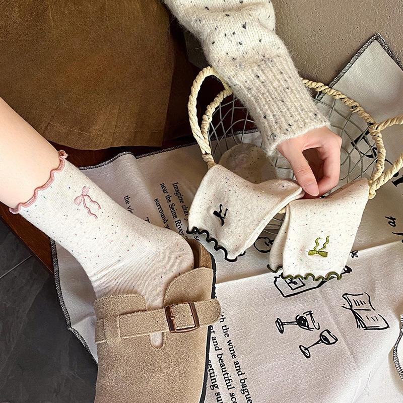 Female Spring and Autumn Cotton Point Yarn Wood Ear Lace Absorbs Perspirant Deodorant Tube Socks