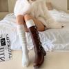 Spring Knee Length Stockings for Female White Pile Socks Fashion GIrls JK Slimming Boots Sock Japanese Calf Sock Cotton Footwear
