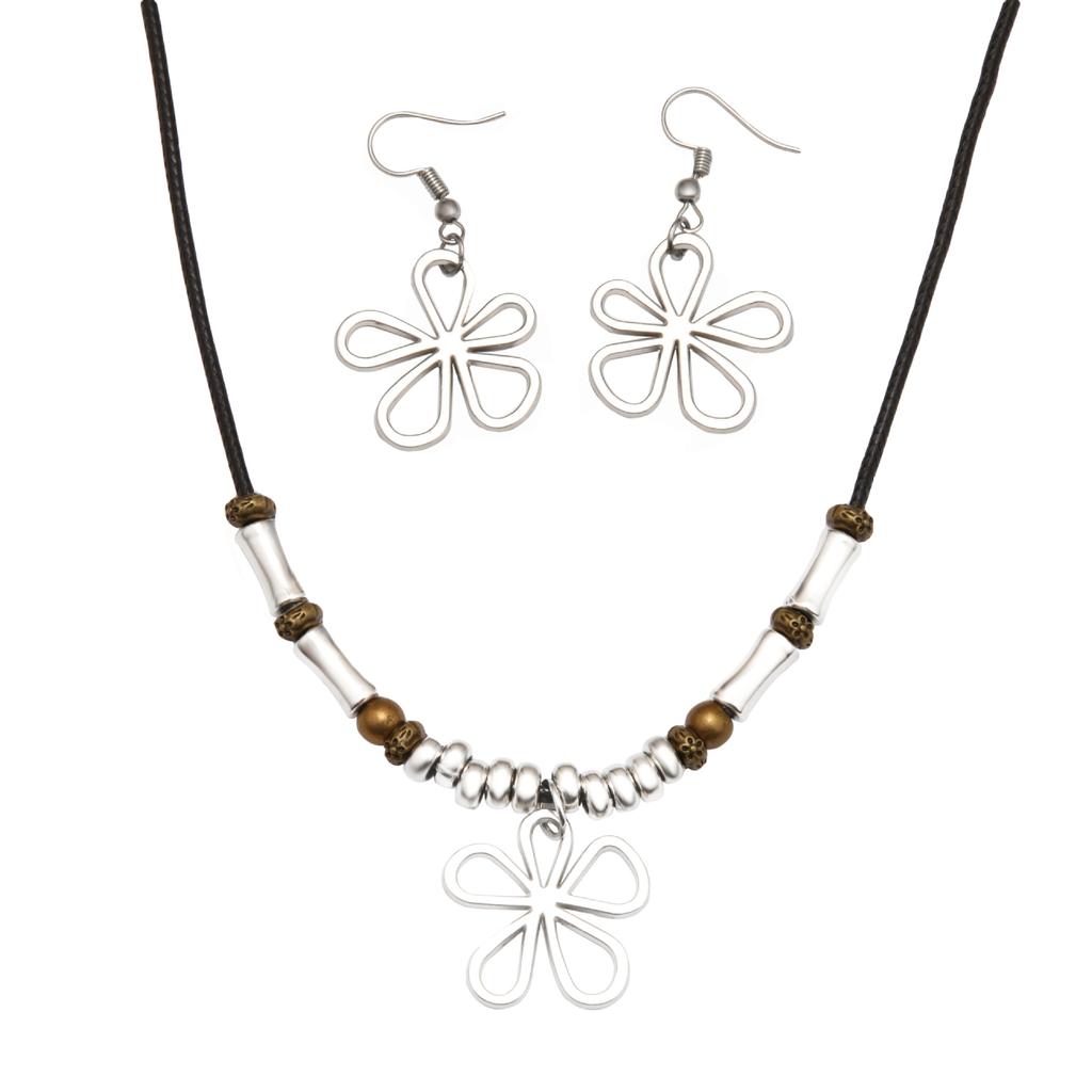 JMXD Clover Beaded Wax Cord Necklace & Earring Set Four-Leaf Clover Summer Beach Pendant Layered Fashion Jewelry Matching Combo