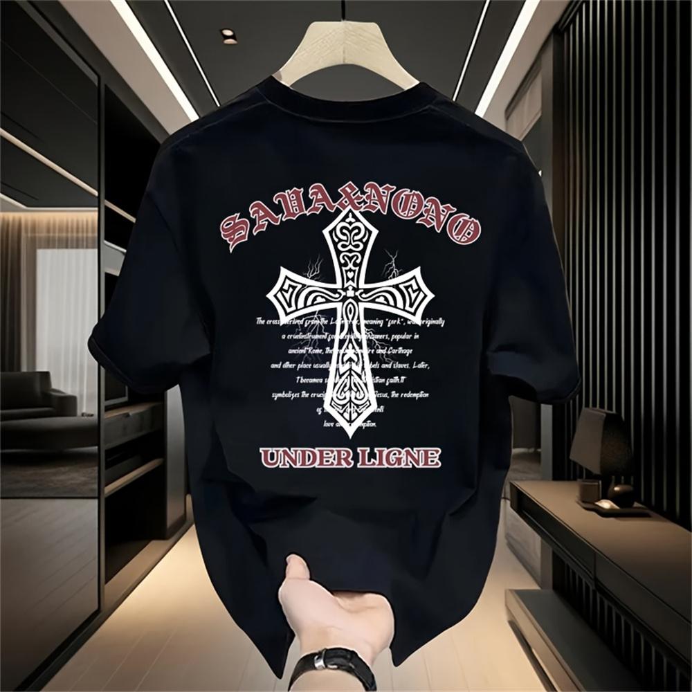 Gothic Style Men's T Shirt Harajuku Cross Printed Punk Casual Short Sleeve T Shirts Hip-hop Loose Streetwear Tops Men Clothing