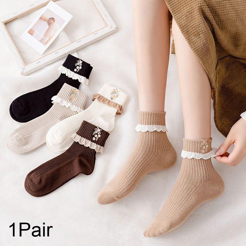 New Women's Lace Lace Socks Cute Middle Socks Flower Embroidered Fashion Socks Japanese Style Small Fresh