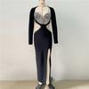 New Long-sleeved Bandage Dress Mesh Party Evening Dress Heavy Industry Ordering Diamond Hip-wrapped Women's Clothing Slim-fitting Long Group