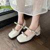 New Square Head Single Shoes Women's Thick Heel One-word Buckle Light Mouth Bow Small Leather Shoes Niche
