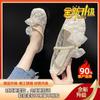 Bow Bag Head Slippers Women's Outer Wear 2025 Summer Thin Mesh Breathable One Pedal Flat Lazy Maternity Shoes