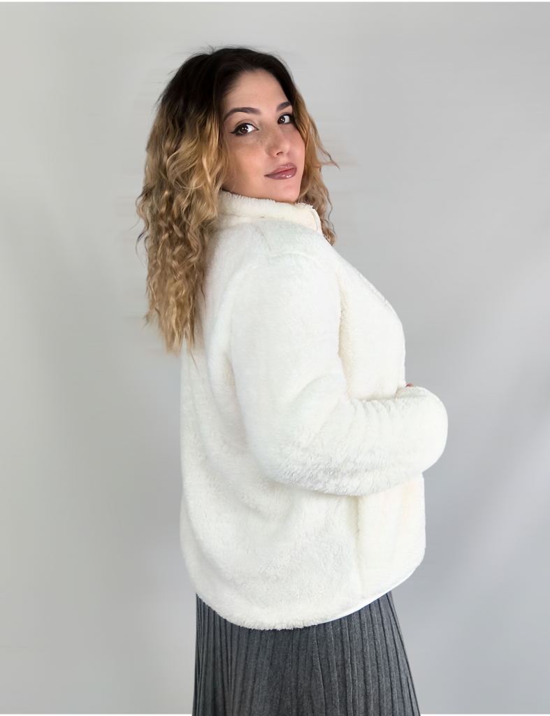 Wow! This jacket is simply perfect for the transitional seasons and for winter. It's lightweight but still manages to warm just the right amount. The fabric is soft and pleasant on the body, it's really fun to wear – both at home and when going out. I especially loved the design – the zipper is convenient, the collar adds an elegant touch, and the side pockets are super practical. I took a size larger than usual (2XL) and the fit was perfect – just like in the photos. For the woman looking for a comfortable, warm, and with a clean and tidy look everyday coat – this is it!