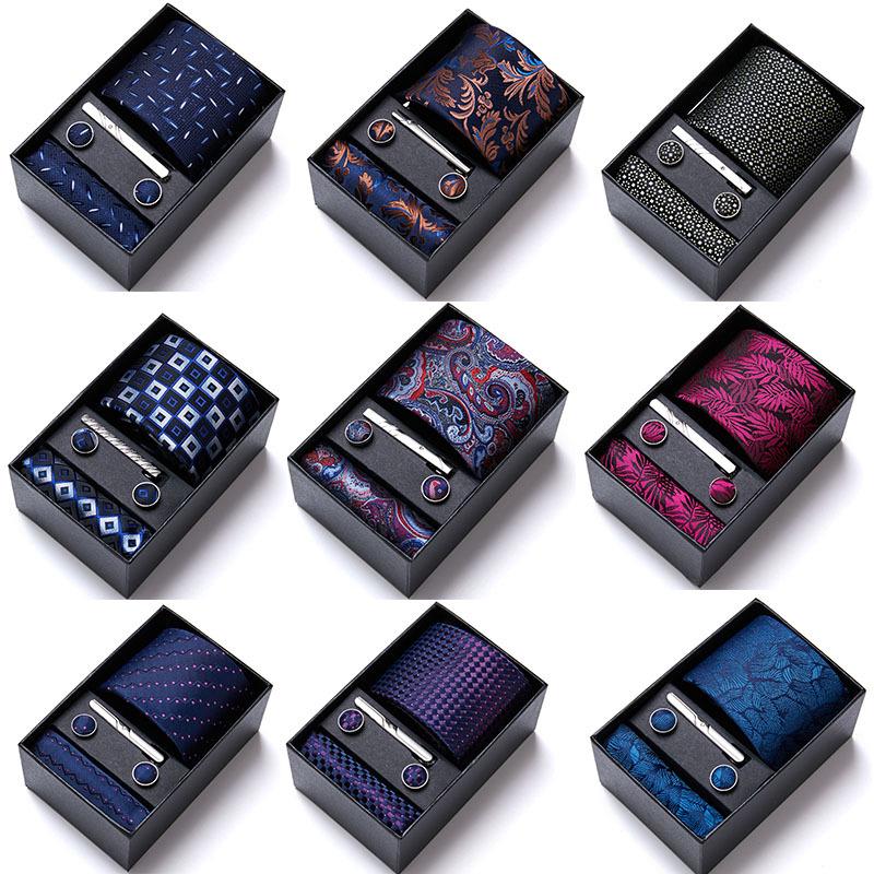 Men's Six-Piece Solid Color Polyester Silk Jacquard Tie Set with Custom Logo