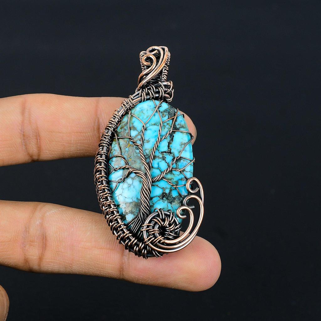 Tibetan Turquoise Pendant, 999 Copper Wire Wrapped Gemstone Jewelry, Handmade Pendant, For Thanksgiving