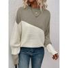 Womens Block Funnel Neck Pullover Sweater Soft High Elasticity Acrylic Knit Fabric Long Sleeve Drop Shoulder Design Perfect for Fall and Winter