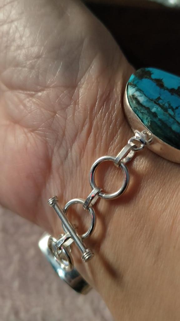 Tibetan Turquoise Gemstone 925 Sterling Silver Bracelet7-8"