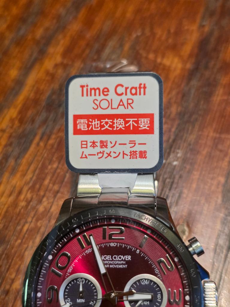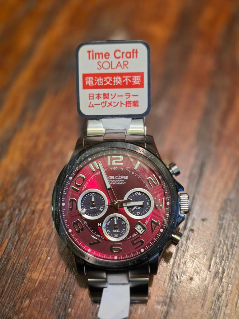 Angel Clover Men's Timecraft Solar Chronograph Watch with Sapphire Crystal and Red Dial, NTCS44SBRE, Silver