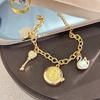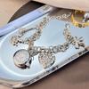 Personalized Full Diamond Peach Heart Gold and Silver Bracelet Watch Female Diamond Design Bracelet Quartz Watch