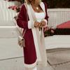 Women's and winter women's solid color stitching long-sleeved cardigan knitted sweater
