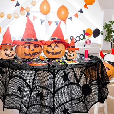 Halloween Tablecloth Decoration Black Lace Table Runner Round Spider Cobweb Table Cover Fireplace Mantel Scarf Lampshade Bat Wall