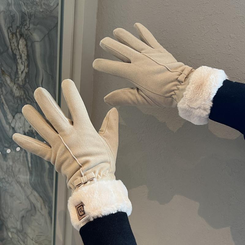 Fleece Thickened Warm Gloves Winter Women Windproof Cold Students Outdoor Riding Electric Vehicles Five-finger Tide