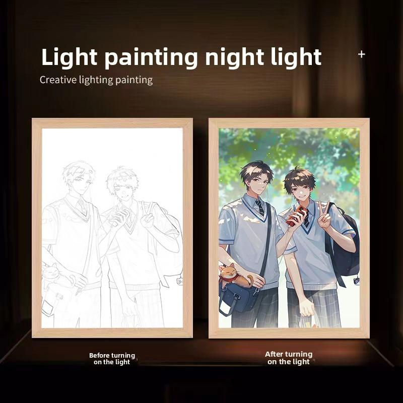 23cm/9.06in 3D Anime Light Painting Night Novel Peripherals Mirror Led Lamp Collectible Bedroom Table Top Ornaments Display Toys