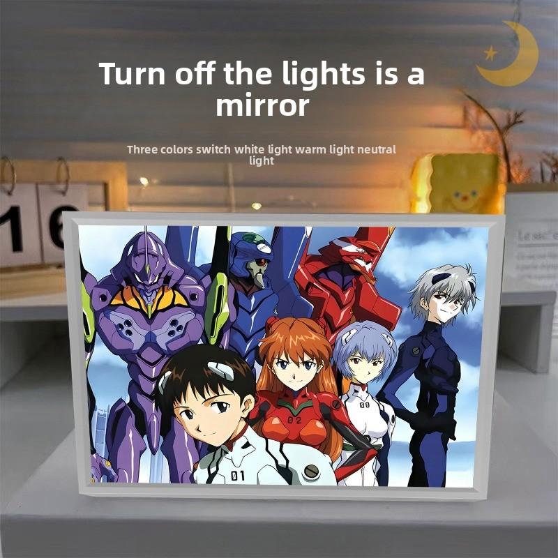 21cm/8.27in Evangelion Light Painting 3D Led Mirror Lamp Anime Figure Peripherals Desktop Collectible Crafts Birthday Decoration