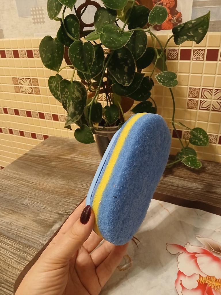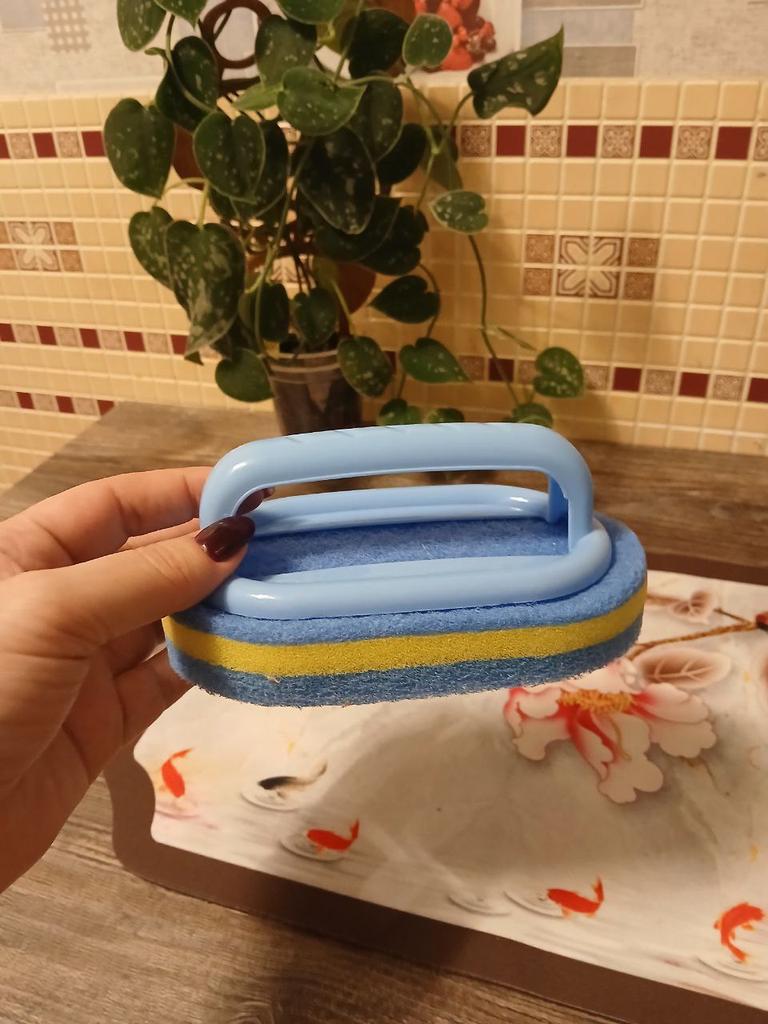 Universal 3-layer sponge with a handle for washing dishes, baths, tiles and cleaning the entire apartment. ✔️The sponge has a convenient shape that easily washes all hard-to-reach places. ✔️The brush is equipped with an ergonomic handle, comfortable, durable, thanks to which now your hands will not come into contact with the detergent. ✔️This sponge with handle consists of three layers. ✔️A large sponge saves a lot of time for cleaning, compared to a small and usual brush. ✔️For wide surfaces, the sponge on the handle is just perfect - thanks to its large area and its durable material, it easily and quickly removes all dirt and stains. 👍I have already tested the sponge while cleaning the bathroom and I can say with confidence that it does its job excellently ⭐⭐⭐⭐⭐ Satisfied with the order. I recommend!