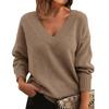 Women's Fashion Casual Solid Color Sweater Set Head V Neck Warm Long-sleeved Sweater