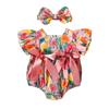 2PCS 0-2Y Baby Clothes Full of Tulip Toddler Girls Bodysuit One Piece Puff Sleeve Girls Clothes with Headband Infant Outfit