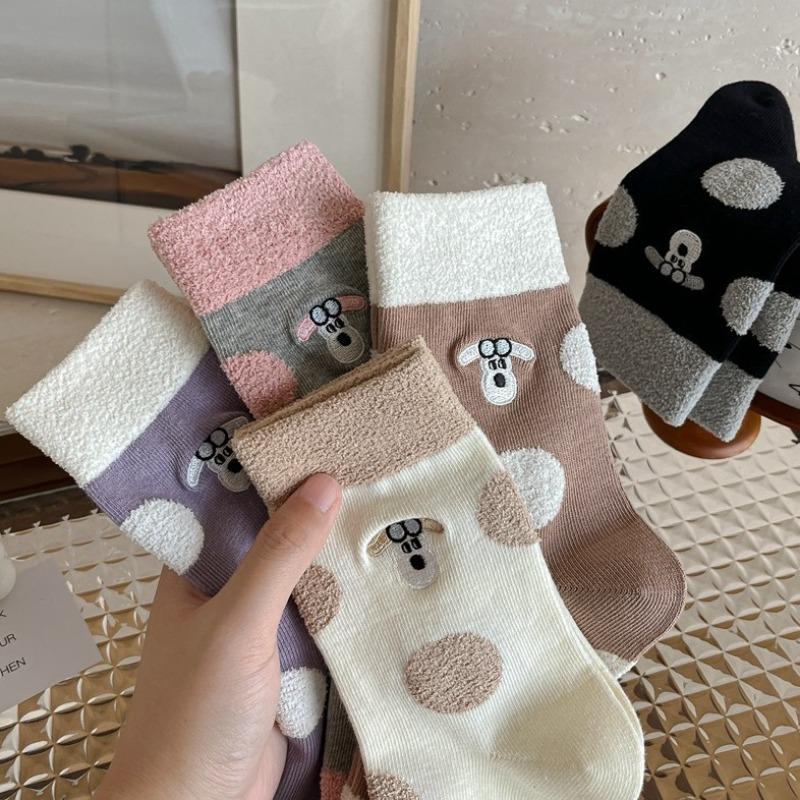 Autumn and Winter Three-dimensional Polka Dot Cute Cartoon Versatile Mid-calf Socks, Plush Polka Dot Women's Socks