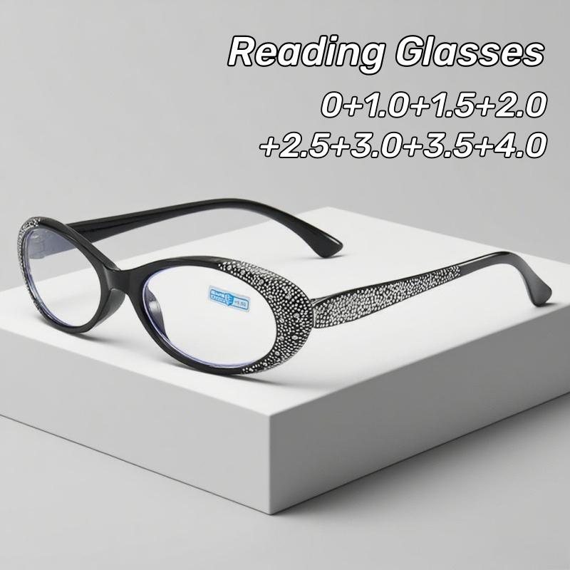 Fashionable Small Frame Diamond Reading Glasses Women's Luxury Reading Glasses Anti-blue Light Glasses Diopter To 0+4.0