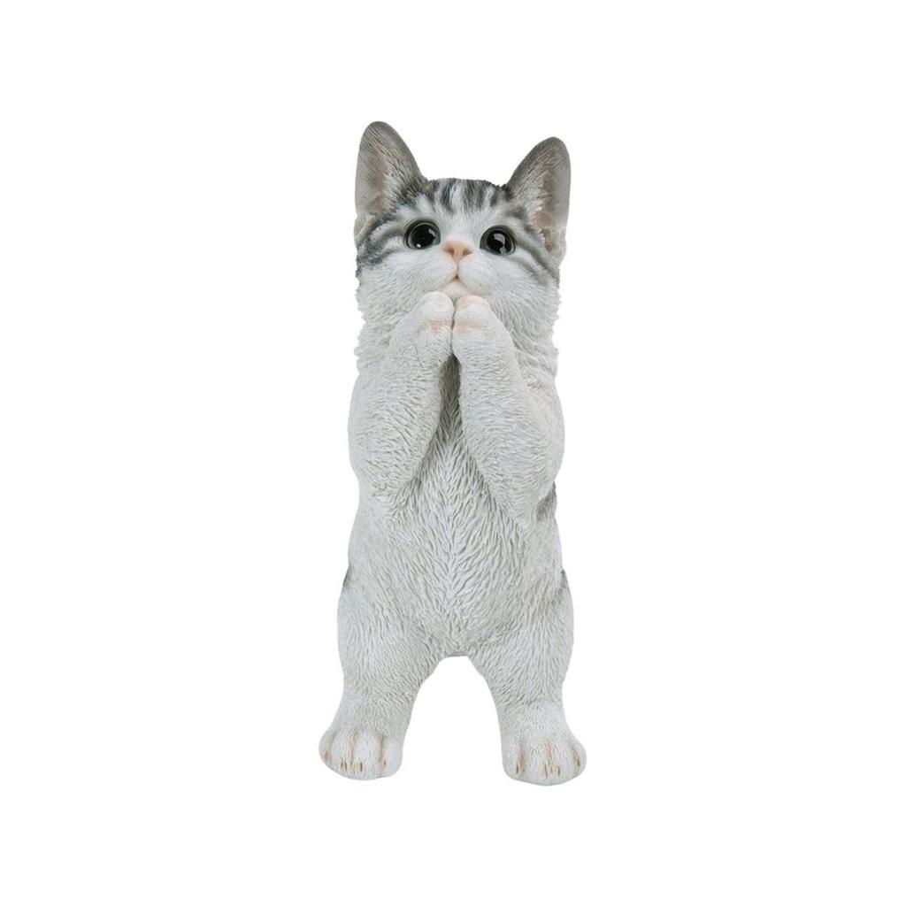 Ubia Begging Tabby and White 15 X X 23 Doll Animal Garden Cat, 9.7 Cm, Figurine, Ornament, Decoration, Cat, H16622-16