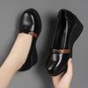 Versatile Shallow Mouth Round Head Small Leather Shoes Women's Autumn New Comfortable Work Shoes One Pedal Soft-soled Wedge Heel Single Shoes
