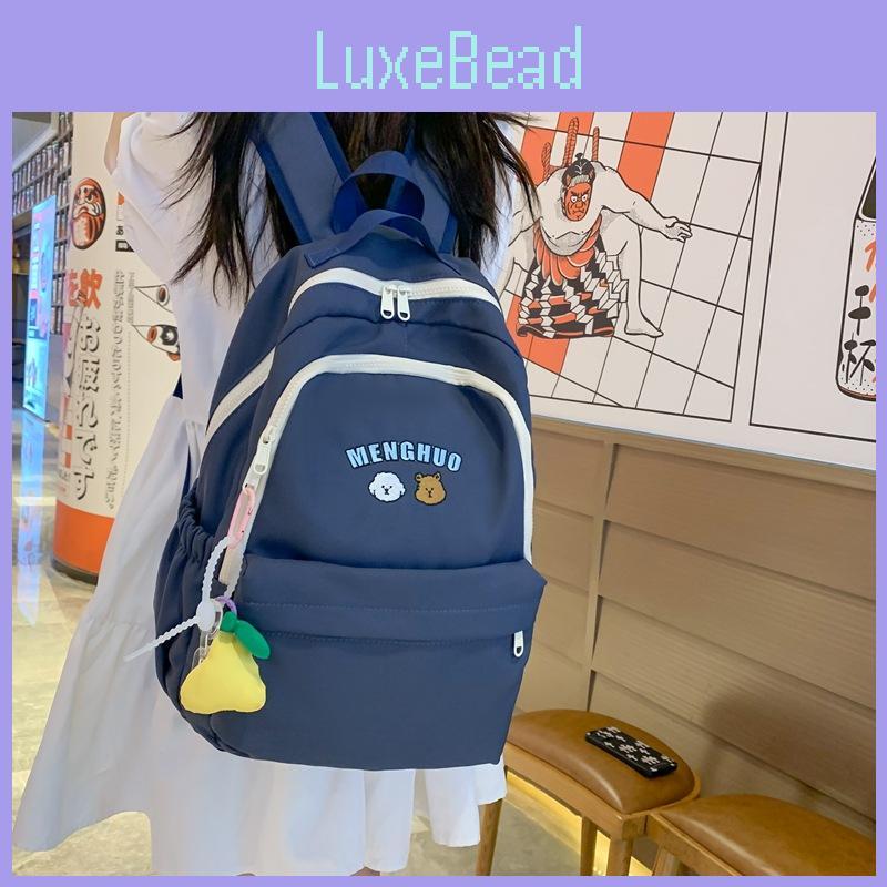 Letter Bear Simplified Printed Student Backpack With Plush Pendant For School