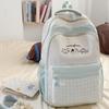 Fashion Grid Cat Embroidery Pattern Unisex Nylon School Backpack For Daily Use