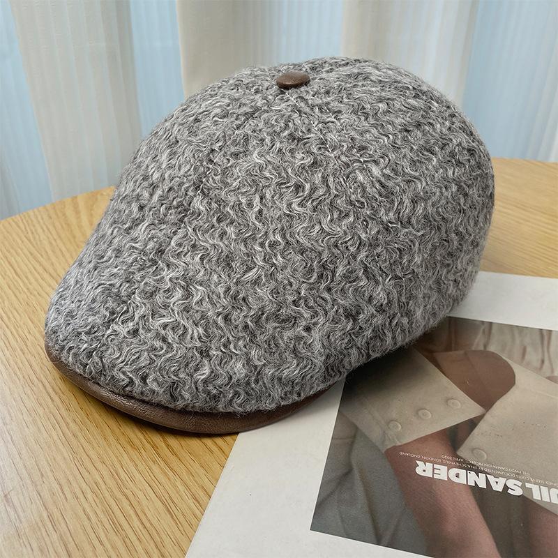 British Retro Woolen Progressive Hat Women's Autumn and Winter Plush Newsboy Hat Showing Face Small Warm Painter Beret