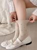 Elegant Ruffle Small Floral Mid-Calf Socks - Women's Versatile Autumn/Winter French Style