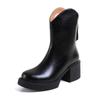 Fashion 2025 Winter New Women Boots Women Shoes Round Toe Square Heel Real Wool Thick Heel Short Boots Solid Color Womens Platform Heels
