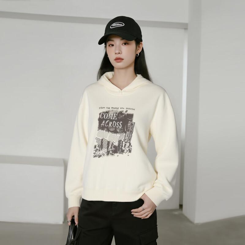 Elva's Island Women's Letter Print Hooded Sweatshirt