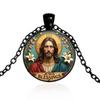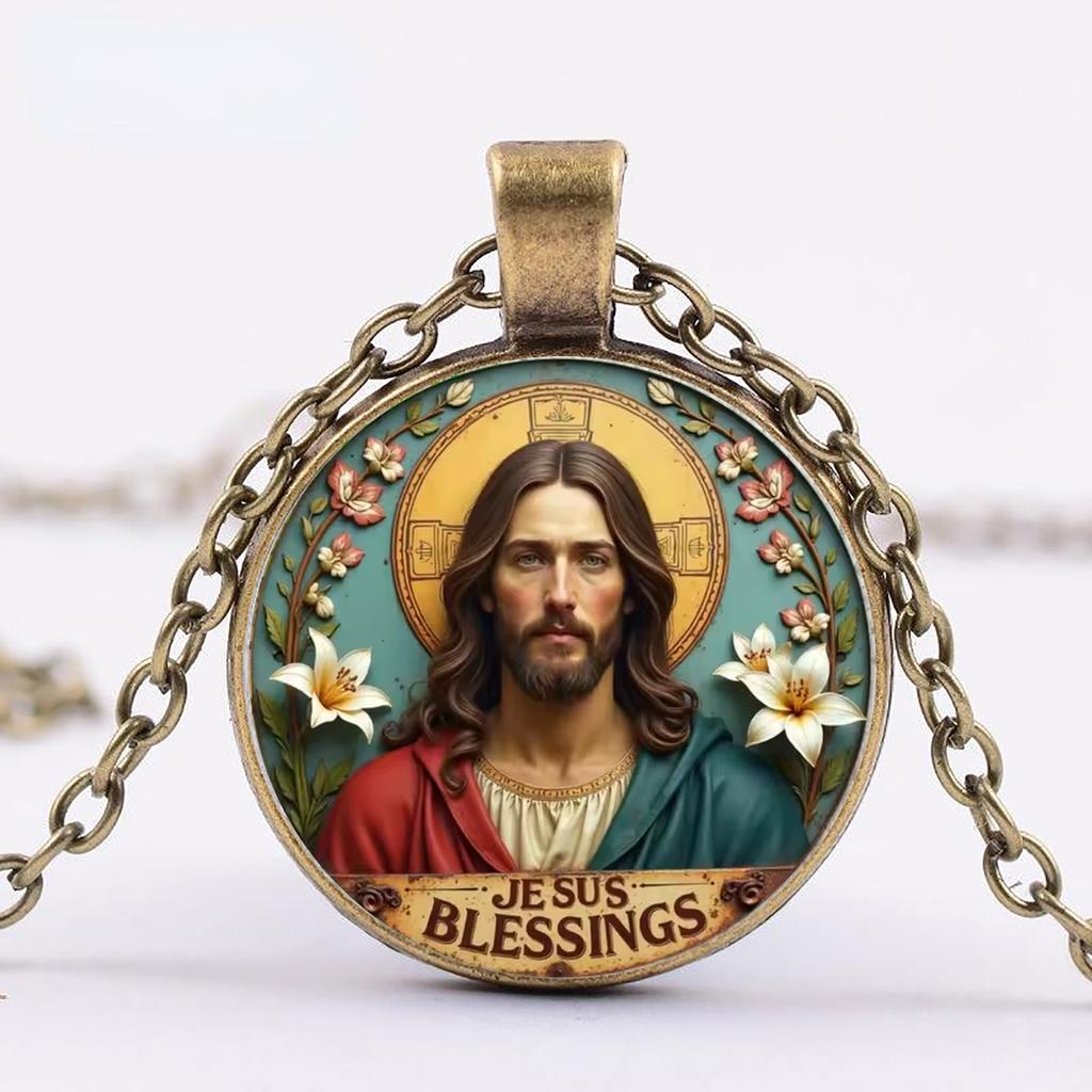 Christian Jesus Blessing Religious Pendant Necklace, Time Gemstone Pendant