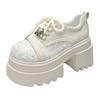 Fashion 9.5CM Spring Women Bling High Heels New 2025 Platform Casual Walking Shoes Non-slip Wedges Leather Chunky Sneakers Lace-up Pumps