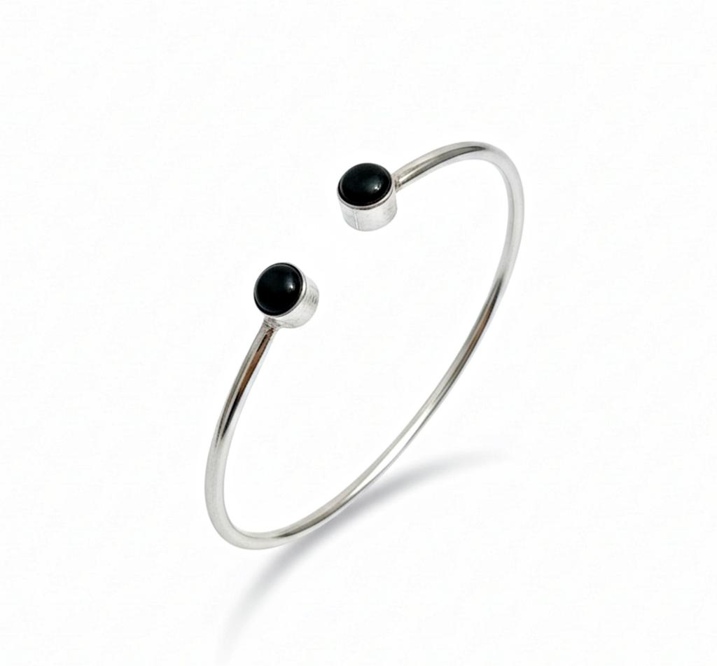925 Solid Sterling Silver Black Onyx Bracelet, Twin Gemstone Adjustable Bangle for Women