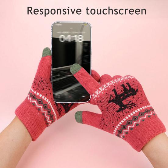 1 Pair Knitted Reindeer Full Finger Gloves Men Women Touch Screen Winter Warm Thick