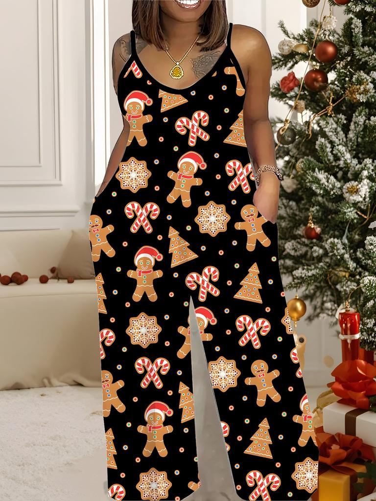 Women's Fashion Jumpsuit, Plus Size Clothing Daily Casual Fashion Wear, Graphic Christmas Printing Design, Party Parties, Christmas Clothing