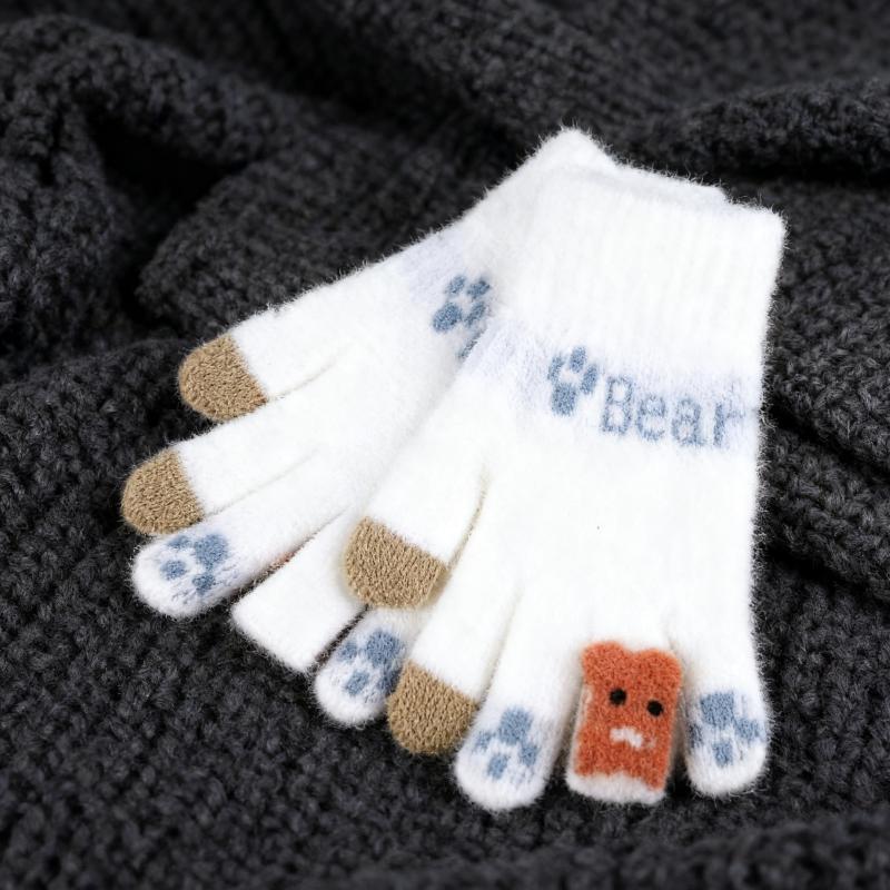 2/4Pcs (1/2 Pair) New Cute Bear Touchscreen Gloves with Fleece Lining, Thickened for Warmth, Suitable for Cycling In Winter Warm In Winter