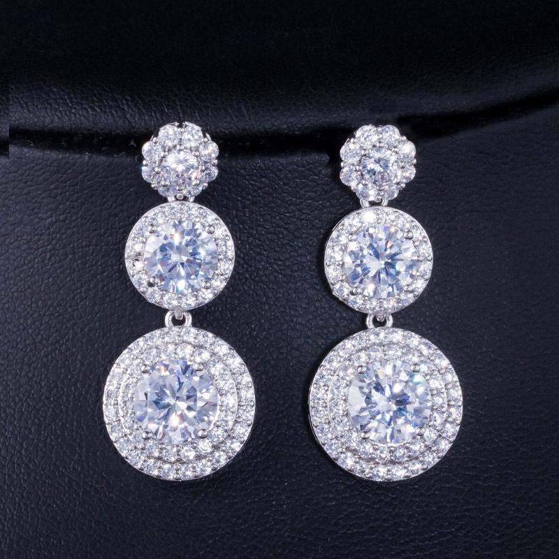 Fashion Jewelry, Geometric Round Earrings, Copper-Inlaid Zircon, Five-Layer Electroplated Real Gold.