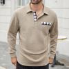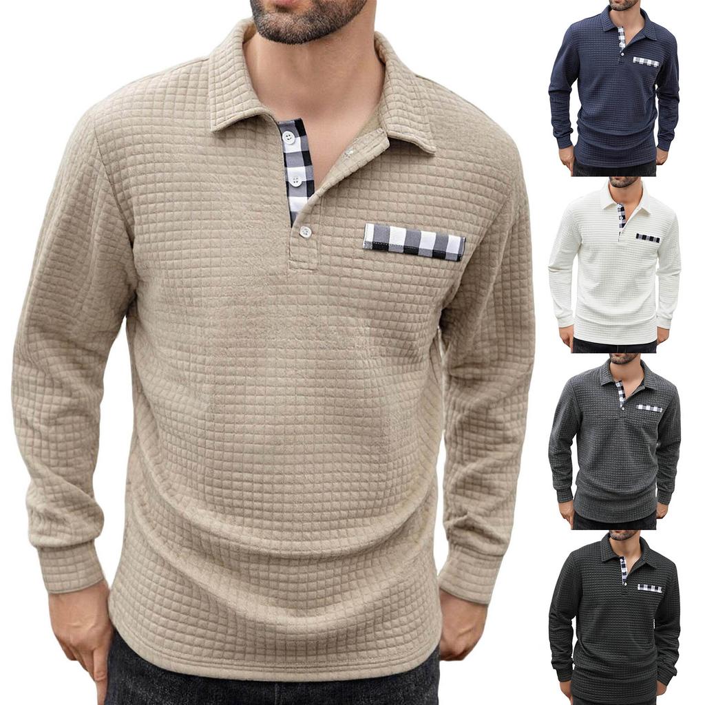 Men's Lapel Single Breasted Small Plaid Top Casual Sports Long Sleeved Top