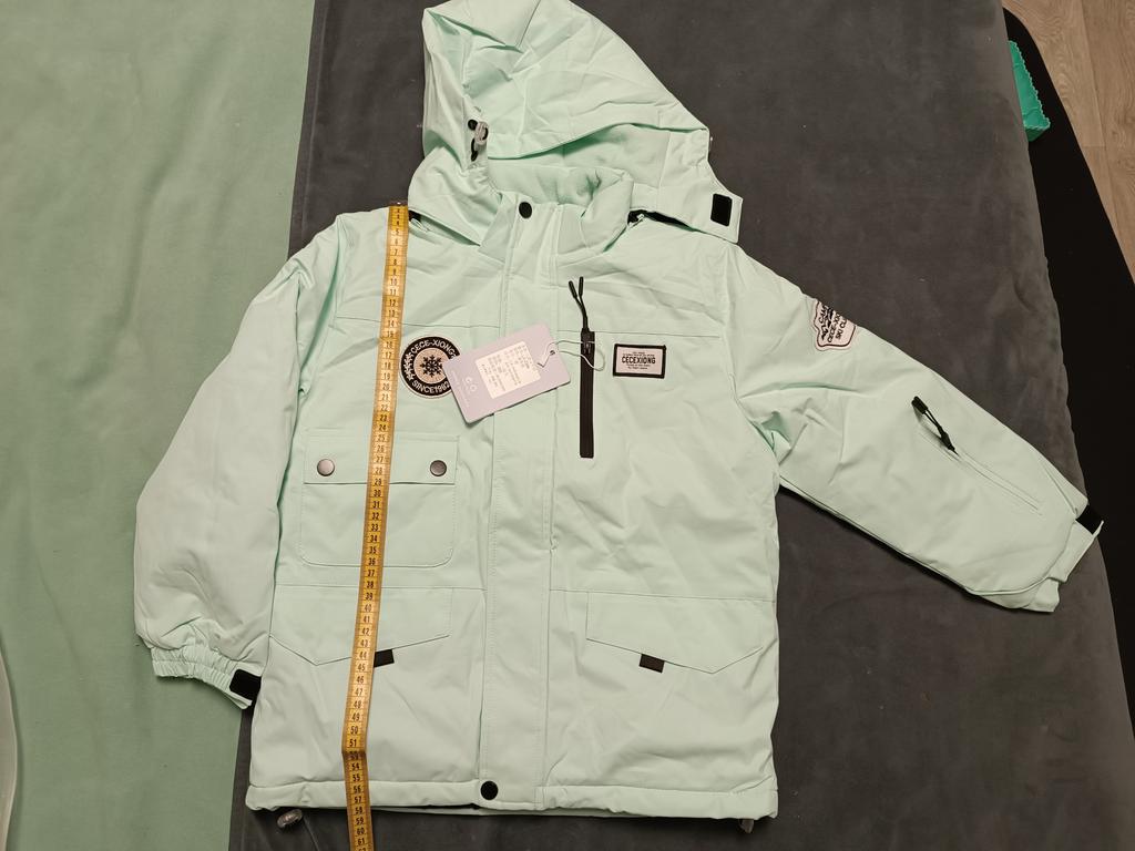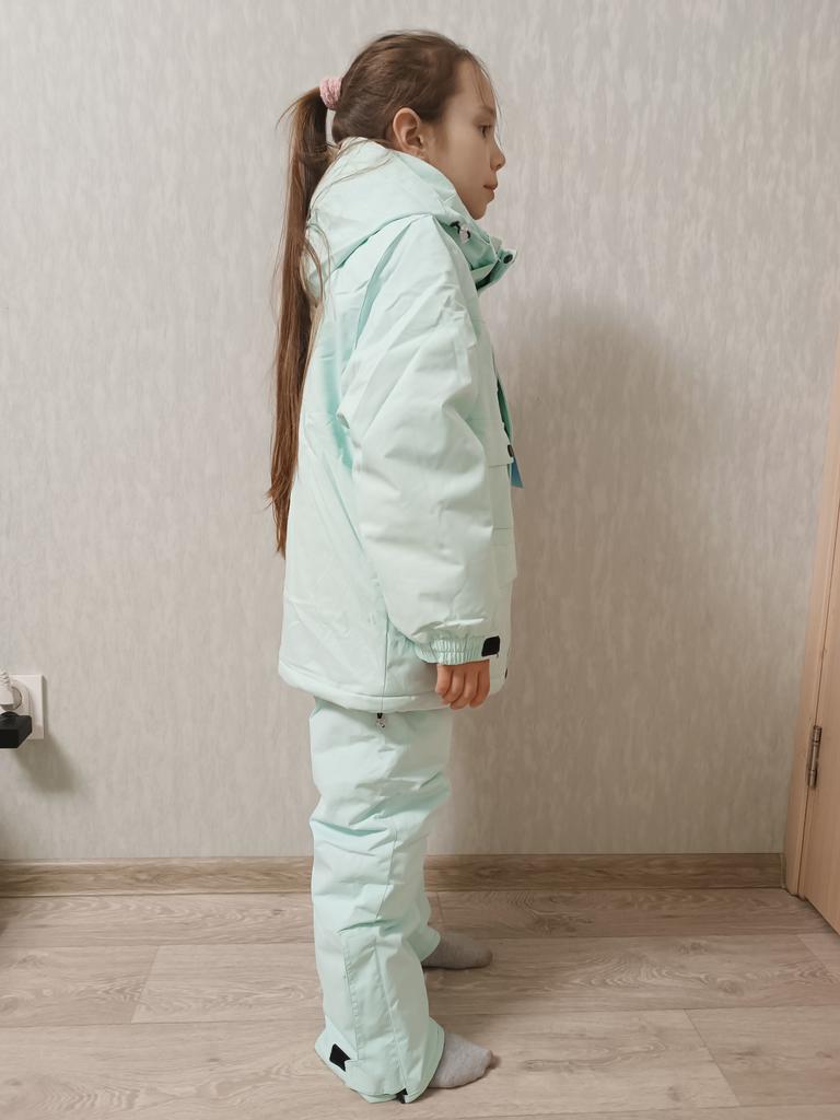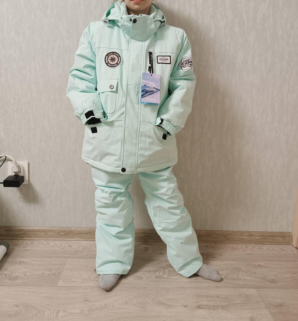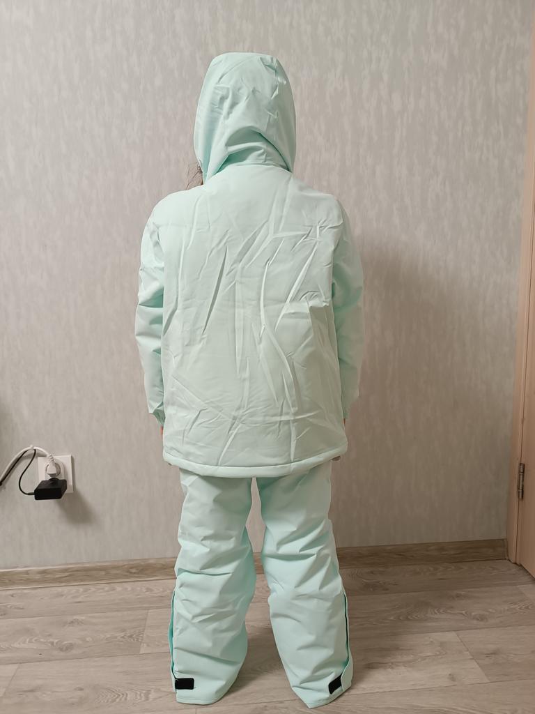 The quality and stitching are good. No threads are sticking out. The fabric is pleasant. We took size 130 for a child 124 cm tall. It's just right with a small allowance. The straps and waistband are adjustable. My daughter is happy. We bought the jacket (130) and the trousers (130) separately. The color matched. Thank you to the manufacturer and Joom.