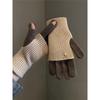 Maillard Winter Dual Use Color Blocked Knitted Wool Gloves for Women's Wool Fingerless Touch Screen Warm Cycling Students