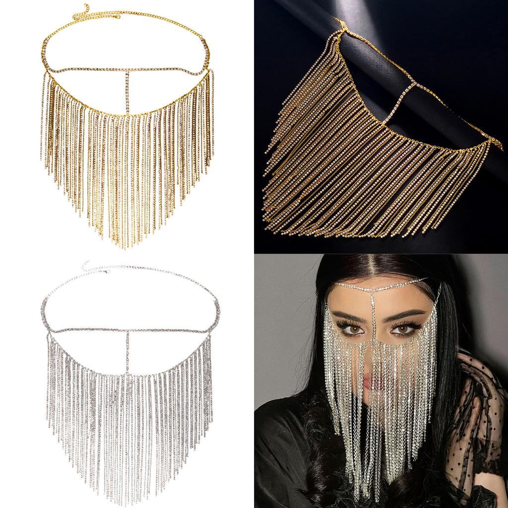 Rhinestone Long Tassels Mask Handmade Crystal Sexy Mask Chain Fashionable Accessory for Cosplay and Theme Parties