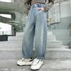 These stylish jeans are perfect for growing kids, designed to suit both spring and autumn seasons. Featuring a modern straight wide-leg cut, they offer a comfortable fit and ample room for movement, making them ideal for active days. The long pants are crafted from durable, high-quality material to withstand daily wear and provide lasting comfort. With a focus on fashion and practicality, these jeans are an essential addition to any child's wardrobe, pairing effortlessly with various tops for a versatile and trendy look.
