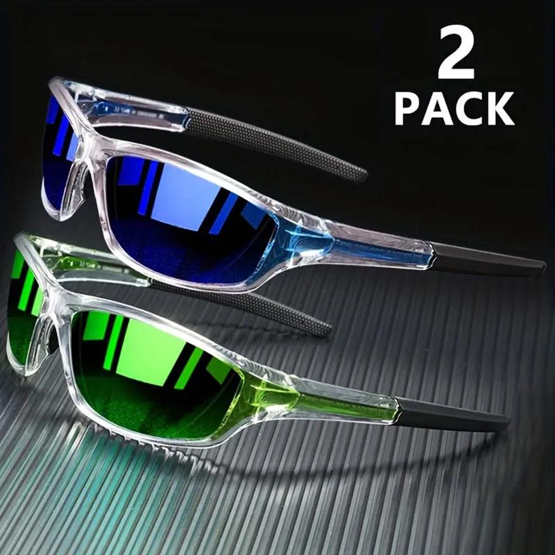 2pcs Sports Polarized Sunglasses for Men Lightweight Night Vision Male Shades Cycling Driving Fishing Fashion Mirror Sunglasses