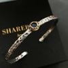 Blue Geometric Zircon Graffiti Bracelet: Women's Retro Chic Design