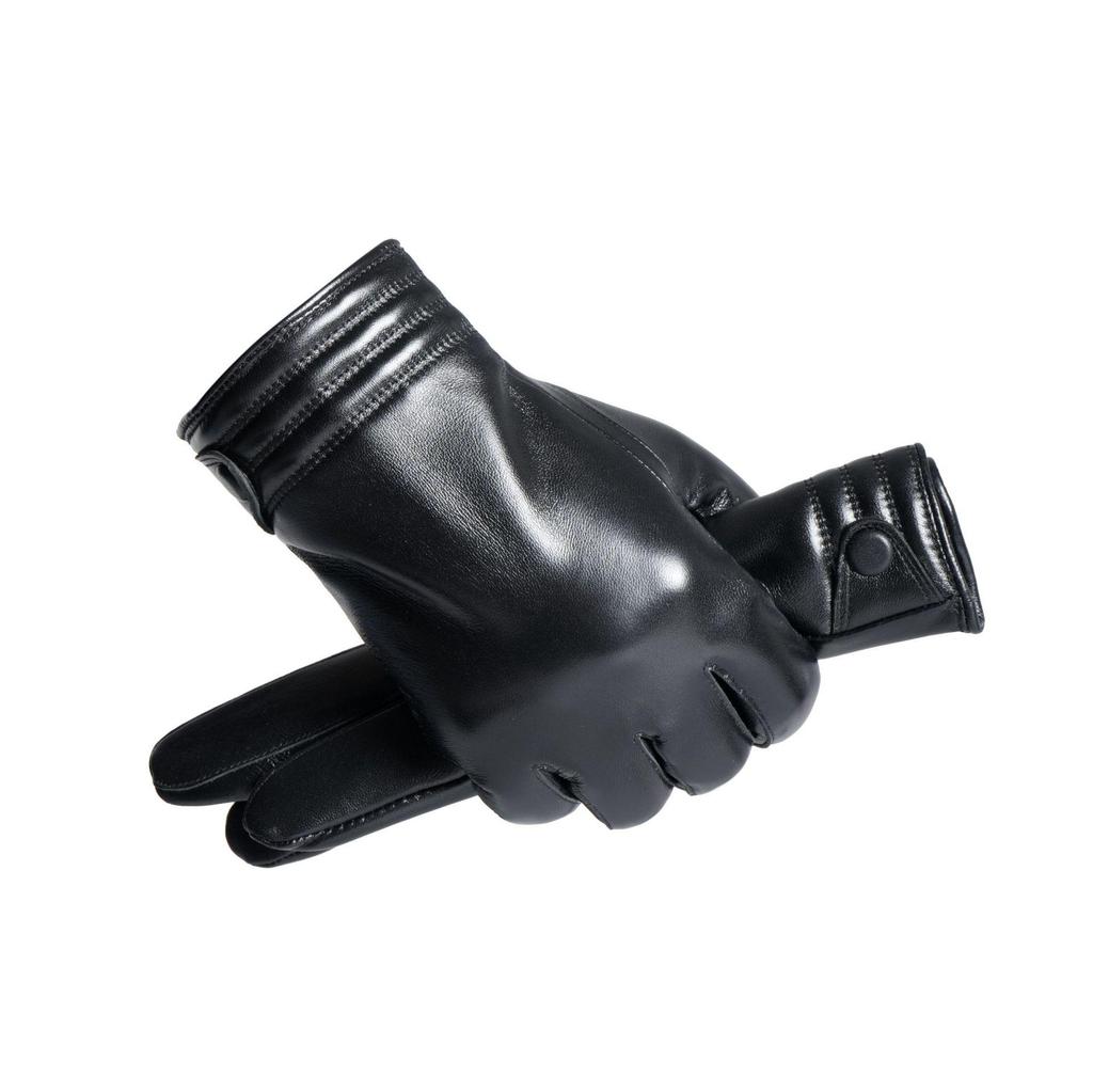 Men's Genuine Leather Fleece-Lined Winter Gloves - Warm Sheepskin Business Style