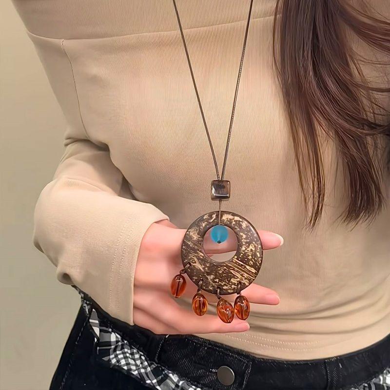 Retro Coconut Shell Resin Pendant Necklace - Creative, Trendy & Versatile Design
